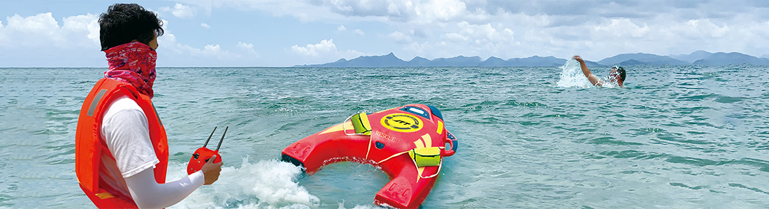 發現海邊遠處或近處有溺水狀況時,救生員可以立刻拋投R1,遙控出發營救溺水人員,速度可達到7m/s,以快速到達溺水者身邊。其次,它省去了花時間準備裝備、召集救生員的過程,可進行單兵操作,節省成本,提高效率。