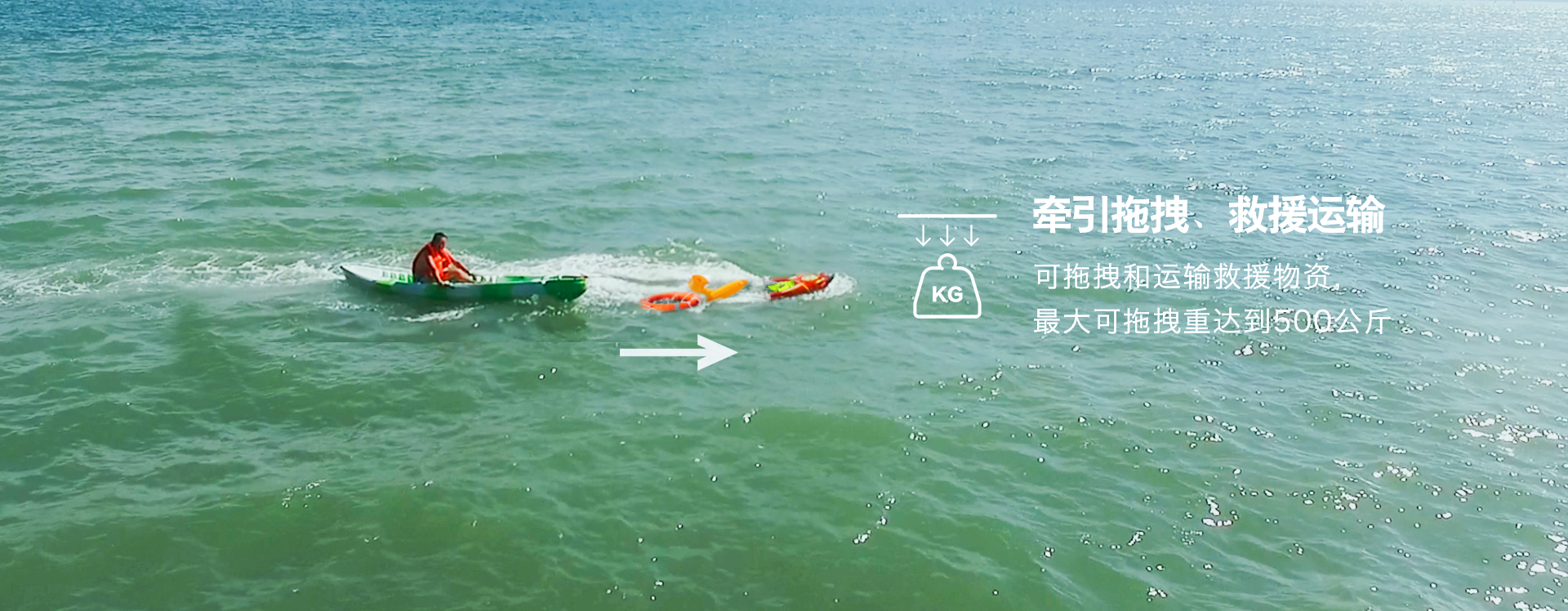 R1除了救人,還能拖拽船只,運輸救援物資等,載重可達500KG,小小身體,帶來更多可能性。