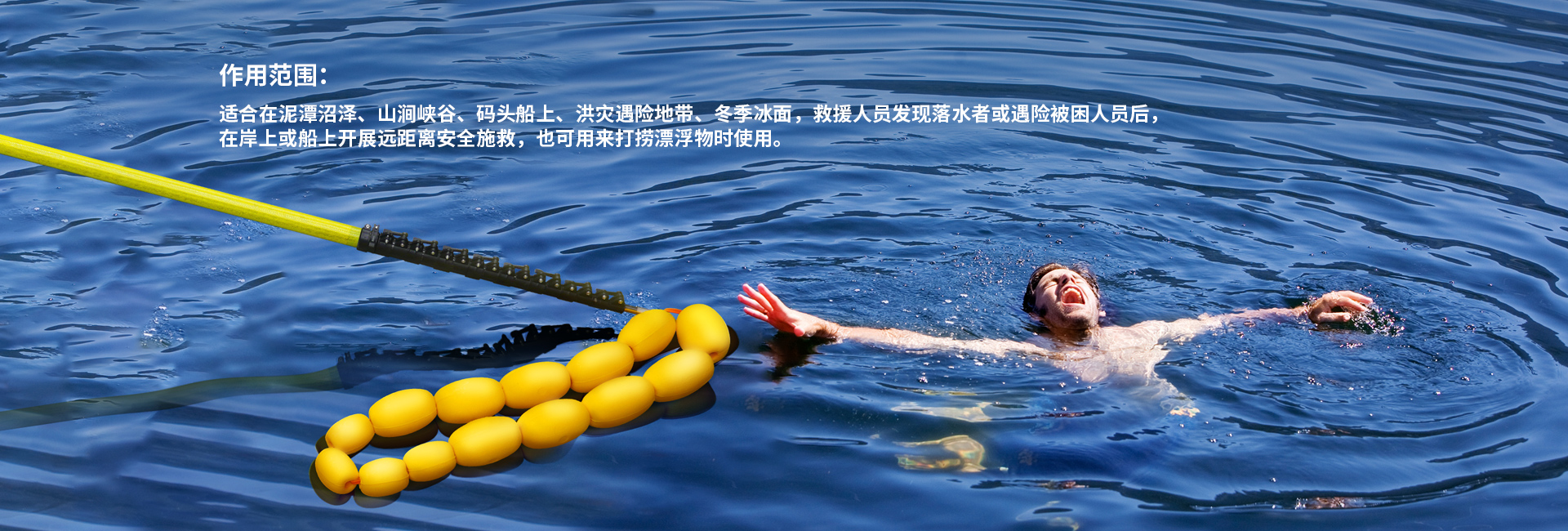 救援繩:適合多人落水,配合救援桿使用,一次救援多人