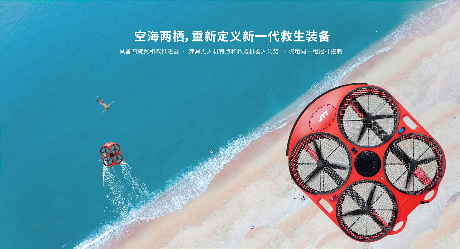 飛行救生圈可應用于洪澇、海面、夜晚以及風浪環境,最大速度可以達 10 米/秒。傻瓜式